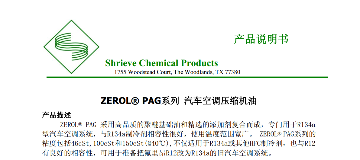 ZEROL? PAG系列 汽車空調(diào)壓縮機(jī)油