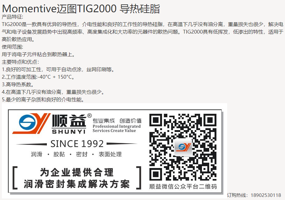 TIG2000是一款具有優(yōu)異的導熱性,介電性能和良好的工作性的導熱硅脂