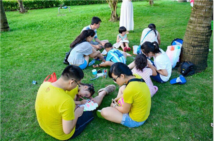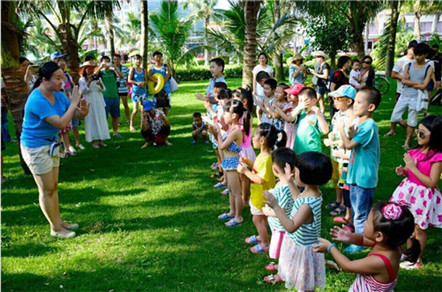 下午四點多,大家在酒店稍作休息之后都開始了游島觀景之旅,離海邊的不遠處種著椰樹,樹蔭下三幾游人正在納涼閑聊,看著遠處星星點點的環繞小島以及偶爾游弋而過的漁船點綴的大海,吹著陣陣的海風,踏在沐浴著陽光的沙灘,留下一串串腳丫子印,這難道不是人生最難忘的美事嗎?下午4點半,我們進行了親子活動,并由行政部主持、組織與指導;活動中有玩游戲、唱ABC歌,小孩子的笑聲是那么清澈。接著給小孩子分配好繪畫用品(風箏和面具)。每個小孩都有家長的陪伴一起完成我們的親子活動繪畫,進行簡單繪畫比賽,并拍照留念。