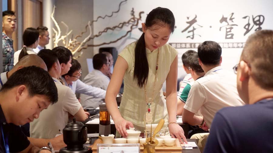 7月9日上午9:00,會議正式開始,由順益體系(集團)總裁辦公室主任龔川主持,總裁張建新發表開幕致辭。會議中,碧潭飄雪創始人徐公論茶、瑞光寺慶妙法師講禪、云放科技董事長周樹明分享“每個人心中的一畝田”,其中,禪茶泰斗徐公還親筆書寫“云淡風清”和“禪茶一味”兩幅墨寶,并贈墨寶于順益體系(集團)。各分公司經理及事業部總監也對上半年度的工作進行了總結與規劃,整個會議過程氣氛熱烈活躍!