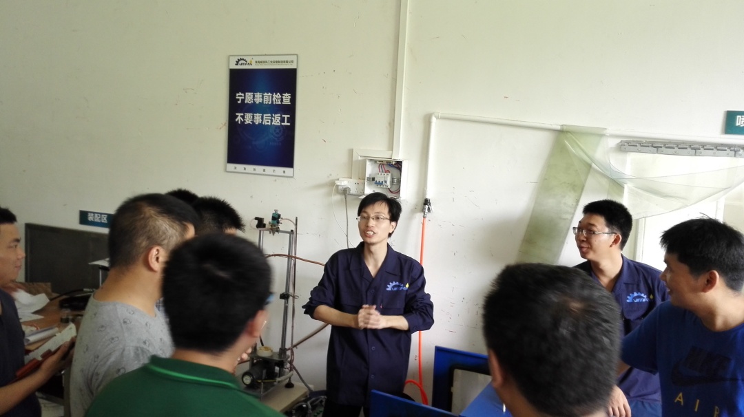 生產主管劉海波結合設備安裝調試及故障排除,與大家交流分享。