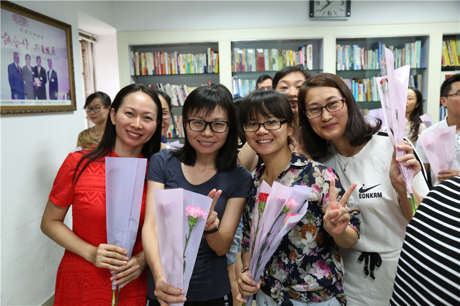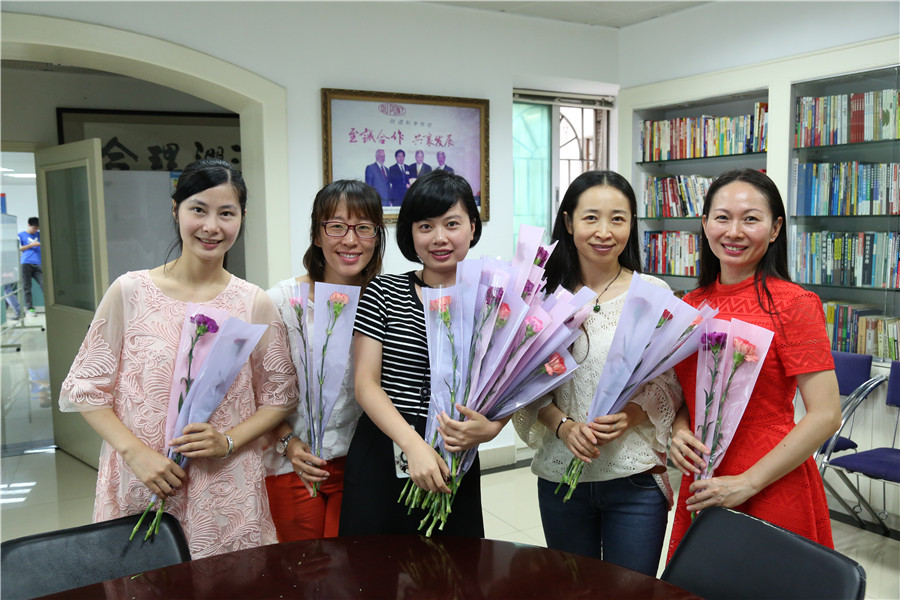 收到花的同事們 露出了燦爛的笑容,歡樂聲此起彼伏,快樂的氣氛充斥著整個(gè)公司。