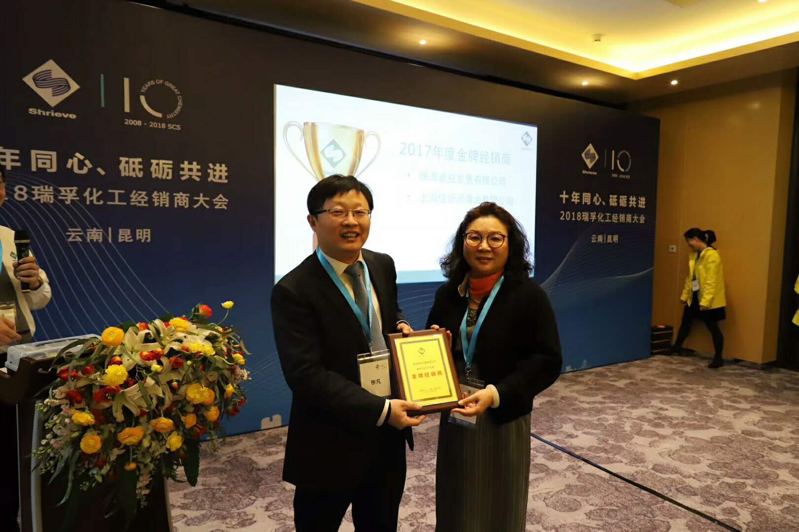 十年同心,砥礪前行! 3月15日,2018瑞孚經(jīng)銷商大會(huì)在美麗的春城昆明召開!會(huì)上,瑞孚中國(guó)區(qū)總經(jīng)理張凡先生親自授予順益體系(集團(tuán))“金牌經(jīng)銷商”榮譽(yù)牌匾,授予順益體系(集團(tuán))四川分公司“精誠(chéng)合作獎(jiǎng)”榮譽(yù)牌匾,以表彰2017年順益體系(集團(tuán))作出的重大貢獻(xiàn)。