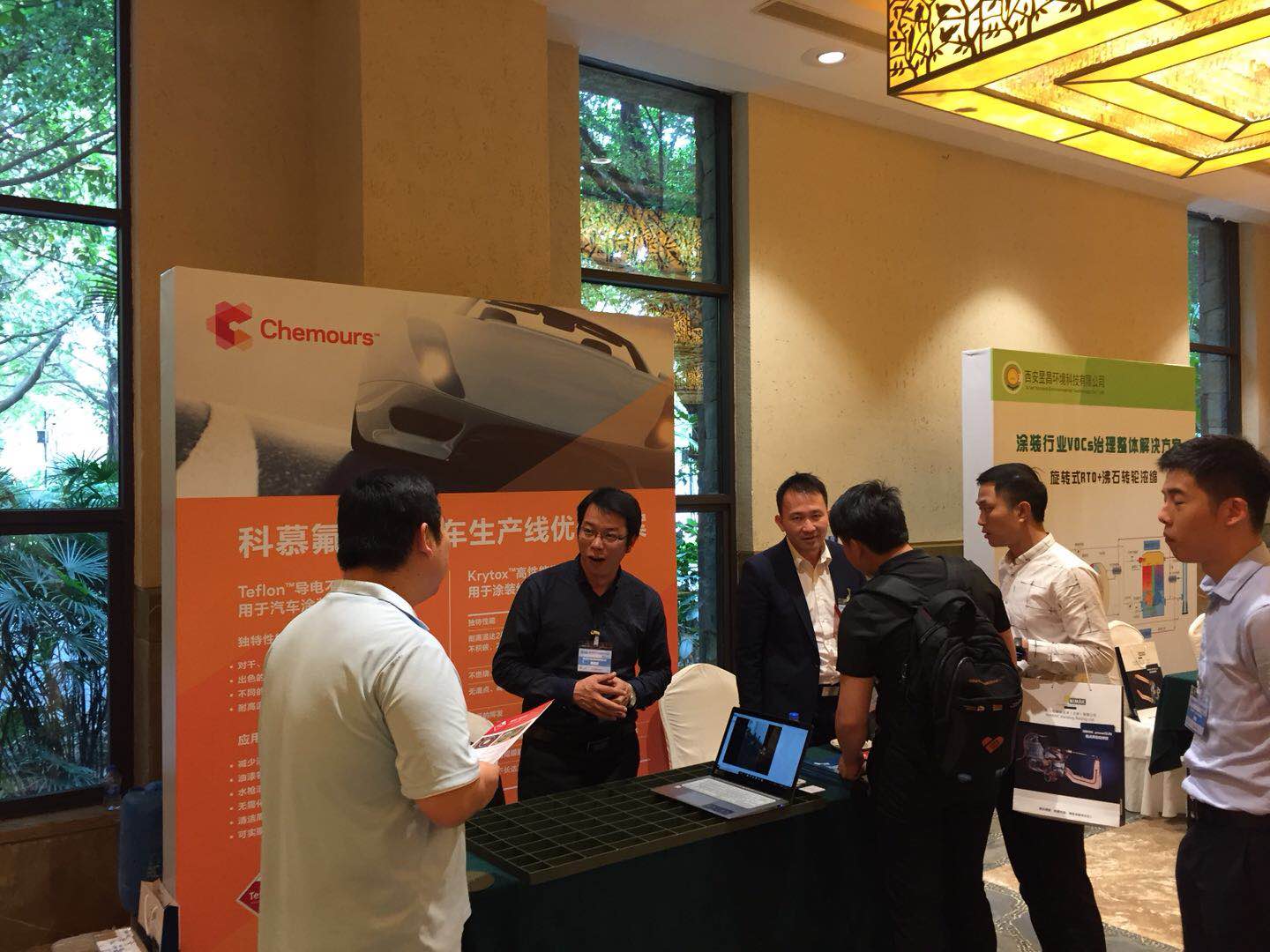 會后,前往展臺參觀、咨詢、洽談科慕Teflon TM不粘涂料和Krytox TM高性能潤滑產品在汽車涂裝線上的應用和技術的人絡繹不絕,得到越來越多廠商的關注。對大家提出的疑問,順益體系(集團)表面處理事業部總監張億及技術主管周建賢都一一耐心作出詳細解答。