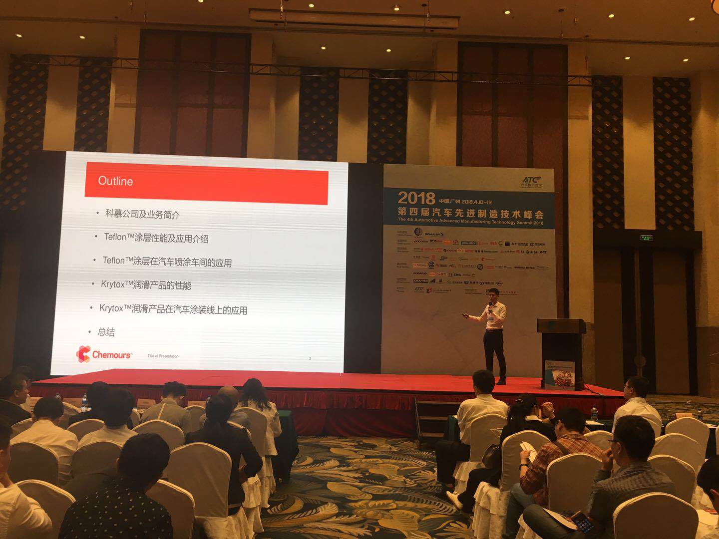 2018年4月10-12日,2018第四屆汽車先進制造技術峰會在廣州盛大召開。作為中國工業專業集成服務,順益體系(集團)協手科慕亮相涂裝專場研討會分會場,為國內外廠商帶來了科慕氟產品汽車生產線優化方案,助力中國汽車制造技術的飛速發展。