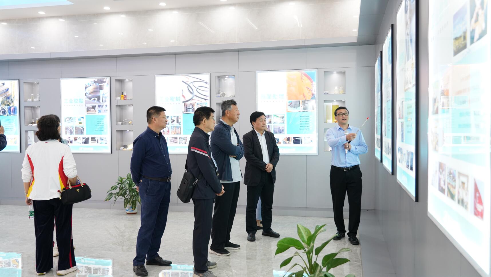 來訪人員先后參觀了順益科技園新材料應用創新基地建設與成果展、工業集成服務展示體驗中心、德國漢高樂泰體驗中心、Krytox高性能潤滑劑應用展示廳、新能源汽車新材料應用展示廳、高性能彈性體及塑料應用展示廳、特種功能涂層材料應用展示廳及順益科技園新材料科普教育基地等地。參觀人員對順益新材料新技術應用創新基地的發展取得的成績給予了充分肯定。