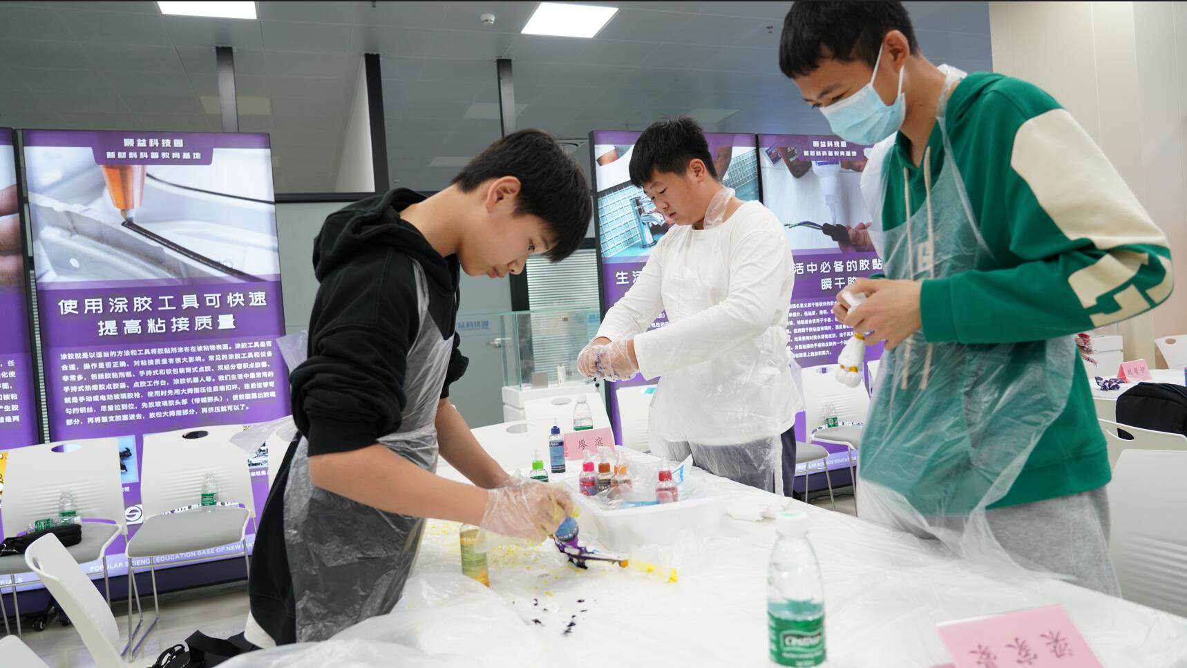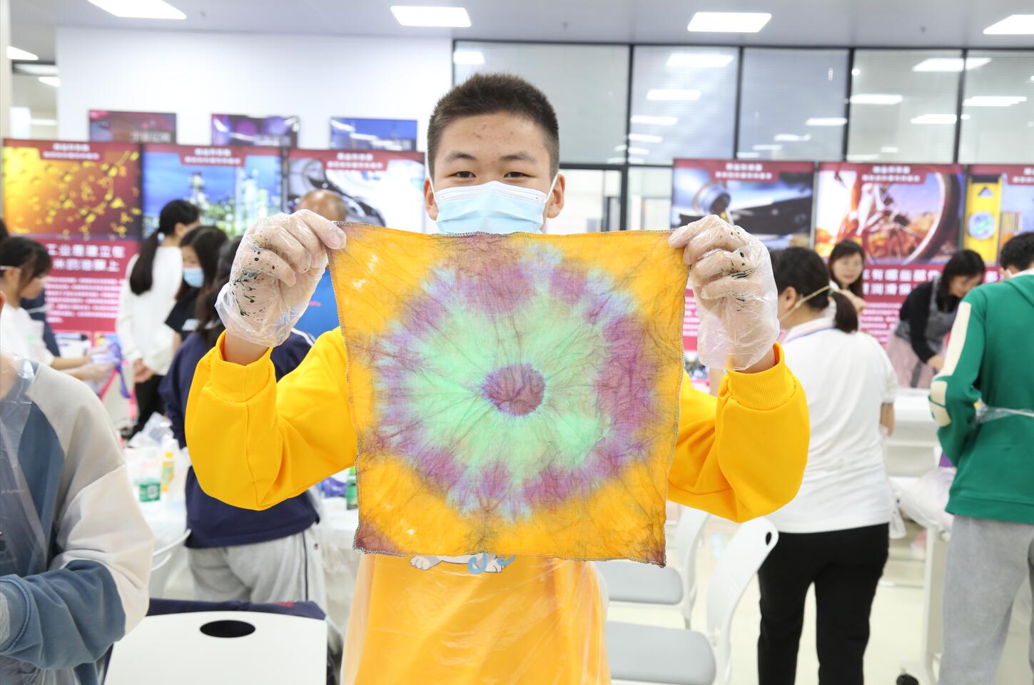 本場活動分別從材料的概念引導青少年走進新材料的奇妙世界,學習材料的發展歷史和最新研究成果,了解新材料在各行各業的廣泛應用。同時參觀珠海第一家以新材料為主題的科普教育基地,看到世界上最輕的固體,新能源汽車的材料應用、管道防腐應用……,活動還進行實踐操作,從探砸不壞的雞蛋、會記憶的金屬小實驗中探索發現隱藏在新材料背后的神奇,體驗和感受新奇有趣的新材料。通過手工扎染體驗感受中國傳統獨特的染色工藝。