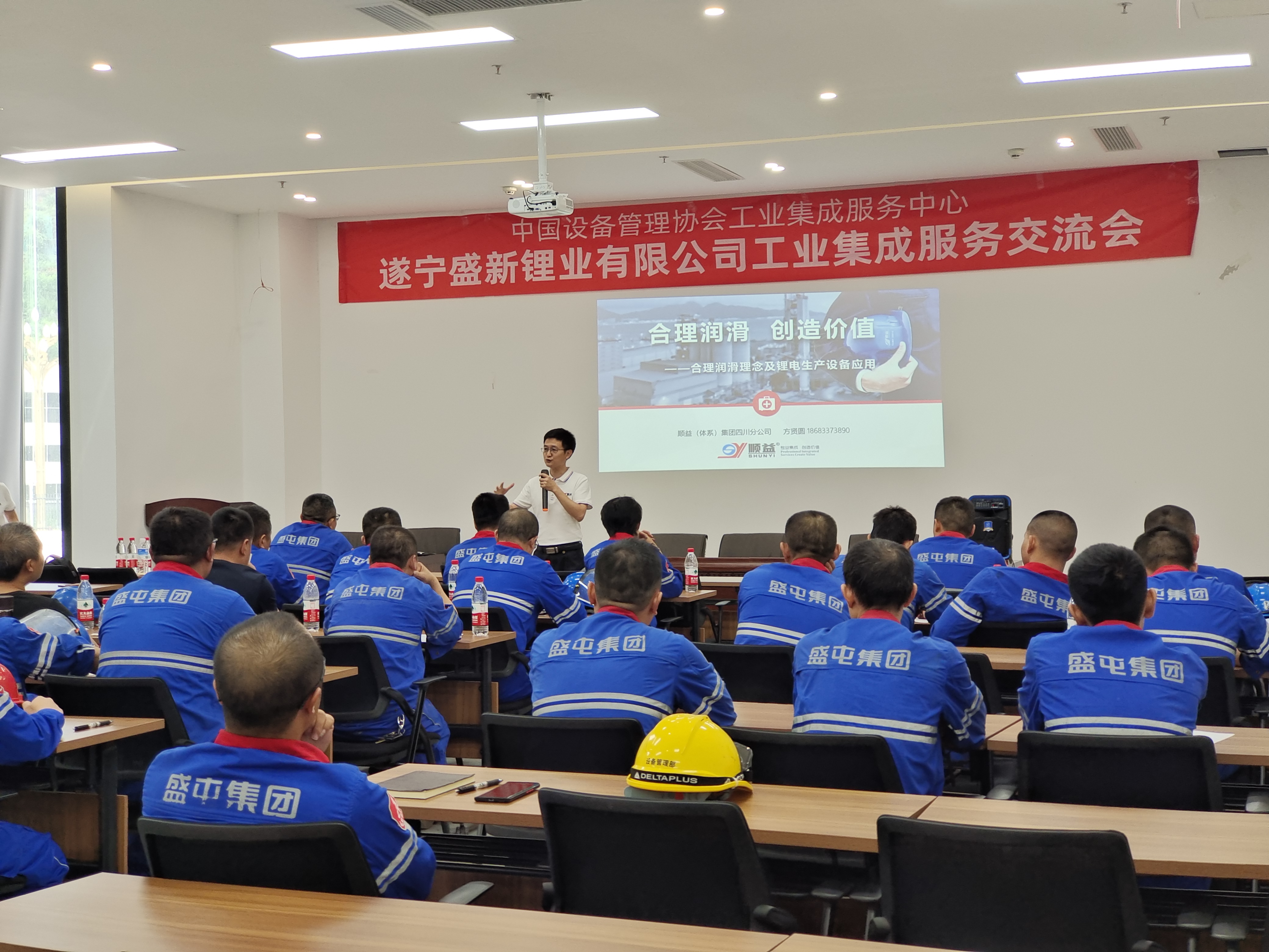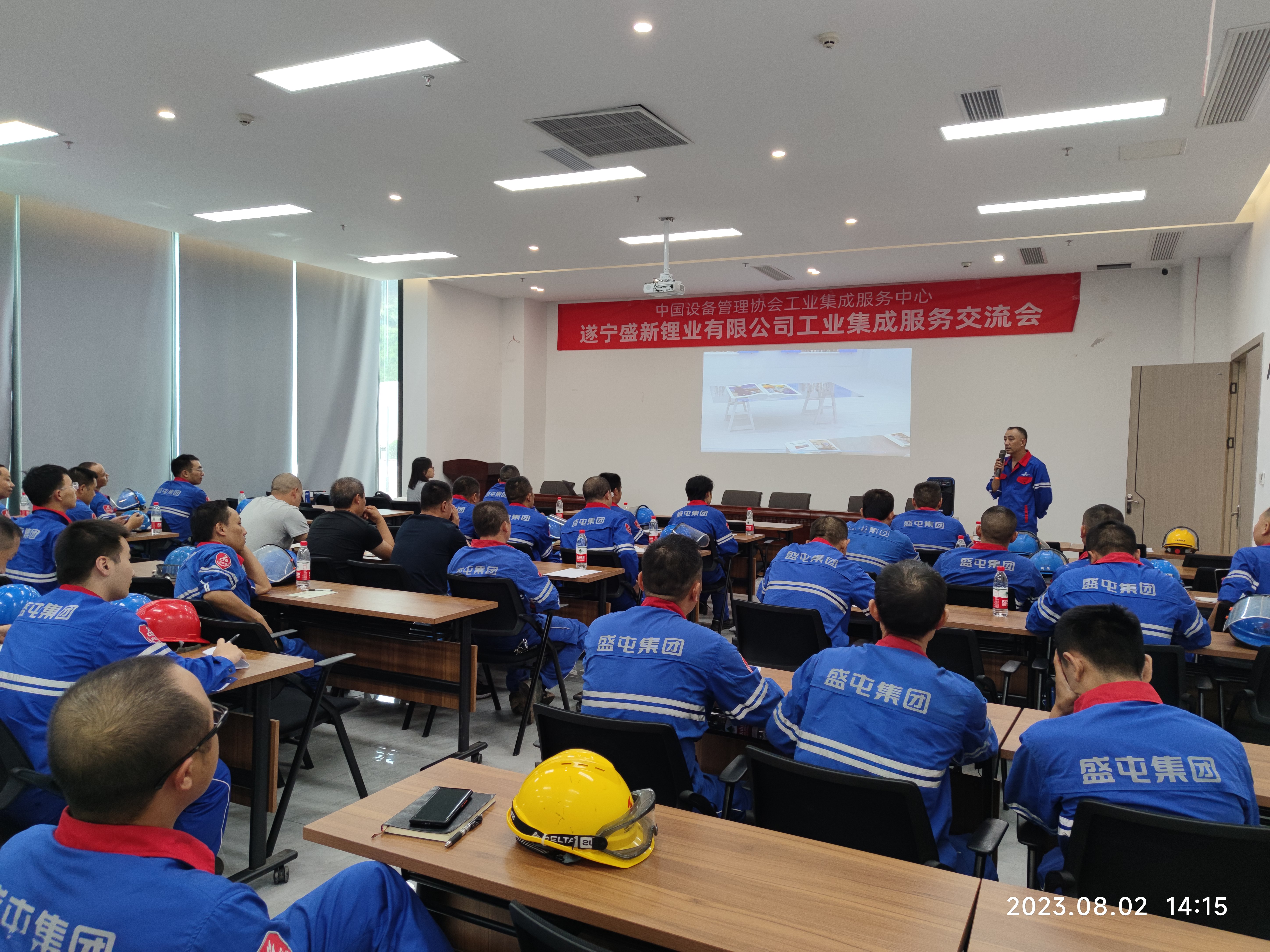 2023年8月2日,中國設備管理協會工業集成服務中心邀請順益體系(集團)四川分公司在遂寧盛新鋰業有限公司召開潤滑防腐修復技術工業集成服務交流會。遂寧盛新鋰業相關領導及設備和生產人員參加了此次會議。