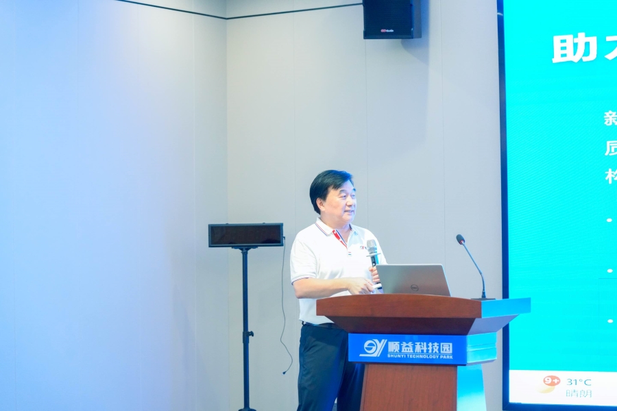 參觀結束后,交流活動在順益科技園多功能會議廳熱烈展開。順益體系(集團)董事長張建新帶來了《推動新材料在工業(yè)領域應用創(chuàng)新,助力生產性服務業(yè)高質量發(fā)展》的主題演講。張總憑借深厚的行業(yè)經驗和敏銳的市場洞察力,深入剖析了新材料在工業(yè)領域的應用現(xiàn)狀與發(fā)展趨勢,分享了順益科技園在推動新材料應用創(chuàng)新方面的成功經驗與實踐案例。