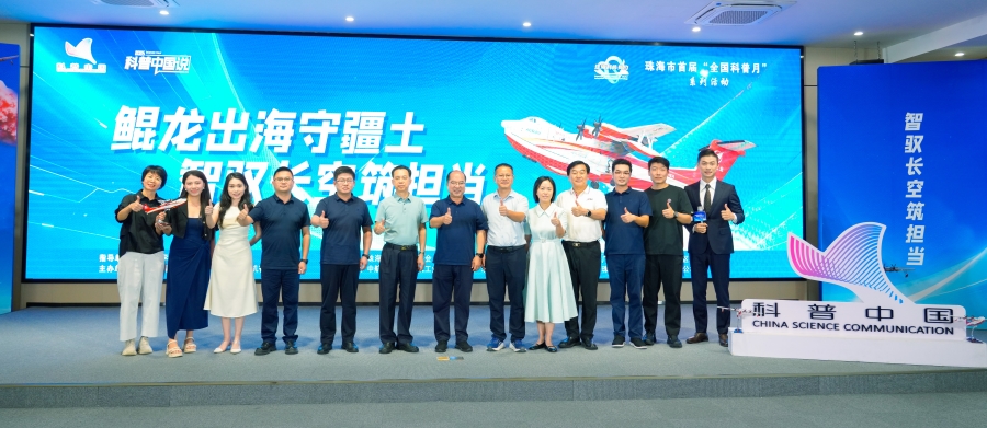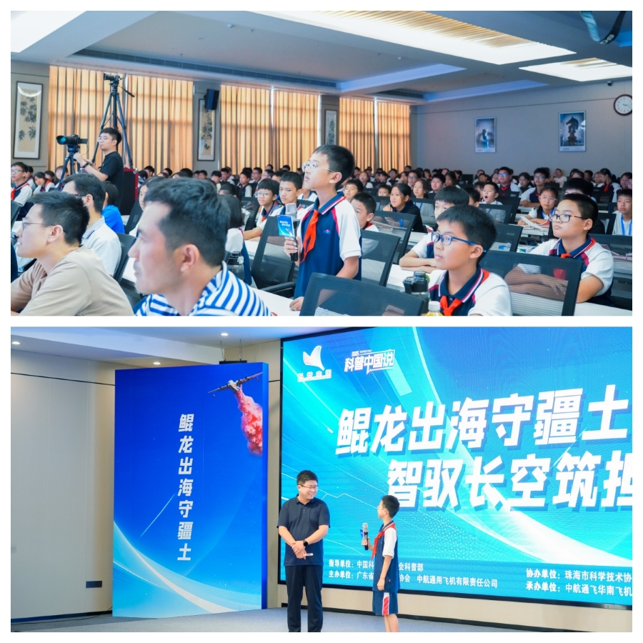 2025 年 9 月 20 日,珠海市首屆“全國(guó)科普月”系列活動(dòng)之“鯤龍出海守疆土 智馭長(zhǎng)空筑擔(dān)當(dāng)”AG600“鯤龍”專場(chǎng)科普中國(guó)說(shuō)活動(dòng),在順益科技園盛大啟幕。本次活動(dòng)由中國(guó)科學(xué)技術(shù)協(xié)會(huì)科普部指導(dǎo),廣東省科學(xué)技術(shù)協(xié)會(huì)、中航通用飛機(jī)有限責(zé)任公司主辦,珠海市科學(xué)技術(shù)協(xié)會(huì)、北京中科星河文化傳媒有限公司協(xié)辦,中航通飛華南飛機(jī)工業(yè)有限公司、廣東科技報(bào)社承辦,廣東省航空航天學(xué)會(huì)、金灣區(qū)科學(xué)技術(shù)協(xié)會(huì) 、珠海經(jīng)濟(jì)特區(qū)順益發(fā)展有限公司作為支持單位積極參與其中。