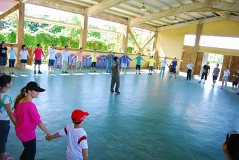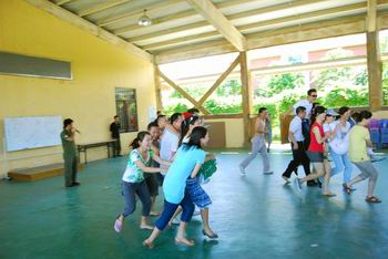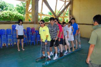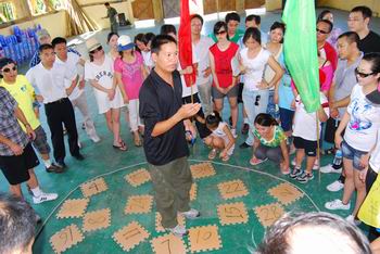 這次活動(dòng)為期一天,但節(jié)目非常豐富。上午,我們?cè)诤H獮车纳衩軑u訓(xùn)練營(yíng)進(jìn)行了團(tuán)隊(duì)PK活動(dòng)。我們分成了四個(gè)PK小組,分別是“勝利隊(duì)”、“夏鷹隊(duì)”、“阿根廷”和“喜羊羊”。活動(dòng)先以緊張刺激的“人口拍賣”熱身,被拍賣的“人口”為了讓自己被接受,也顧不上保持平日的優(yōu)雅形象了,紛紛展示著自己的“雷人面”,臺(tái)下的觀眾捧腹之余,也在祈禱自己別在下一輪“中招”啊!接著的團(tuán)隊(duì)PK賽,那真是體力、腦力、團(tuán)結(jié)一個(gè)也不能少的。不過(guò),最讓人感動(dòng)的是,隊(duì)員們對(duì)隊(duì)長(zhǎng)的支持了,看著隊(duì)員們個(gè)個(gè)竭盡全力地?fù)屜冉o隊(duì)長(zhǎng)送上鞋子、襪子、上衣、頭發(fā)、人體,以及大伙把兩位隊(duì)長(zhǎng)扛回去的奮不顧身,早已讓隊(duì)長(zhǎng)們感激得快要嚎啕大哭了,怎么會(huì)不全力以赴地帶好團(tuán)隊(duì)呢?
