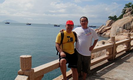 我們在島上呆了兩天一夜,沒有組織什么活動,不是不想組織,實為無可組織。大家海灣里游泳,沙灘上打排球,端坐海邊巖石上垂釣,登伶仃峰觀景,倒也是自在。